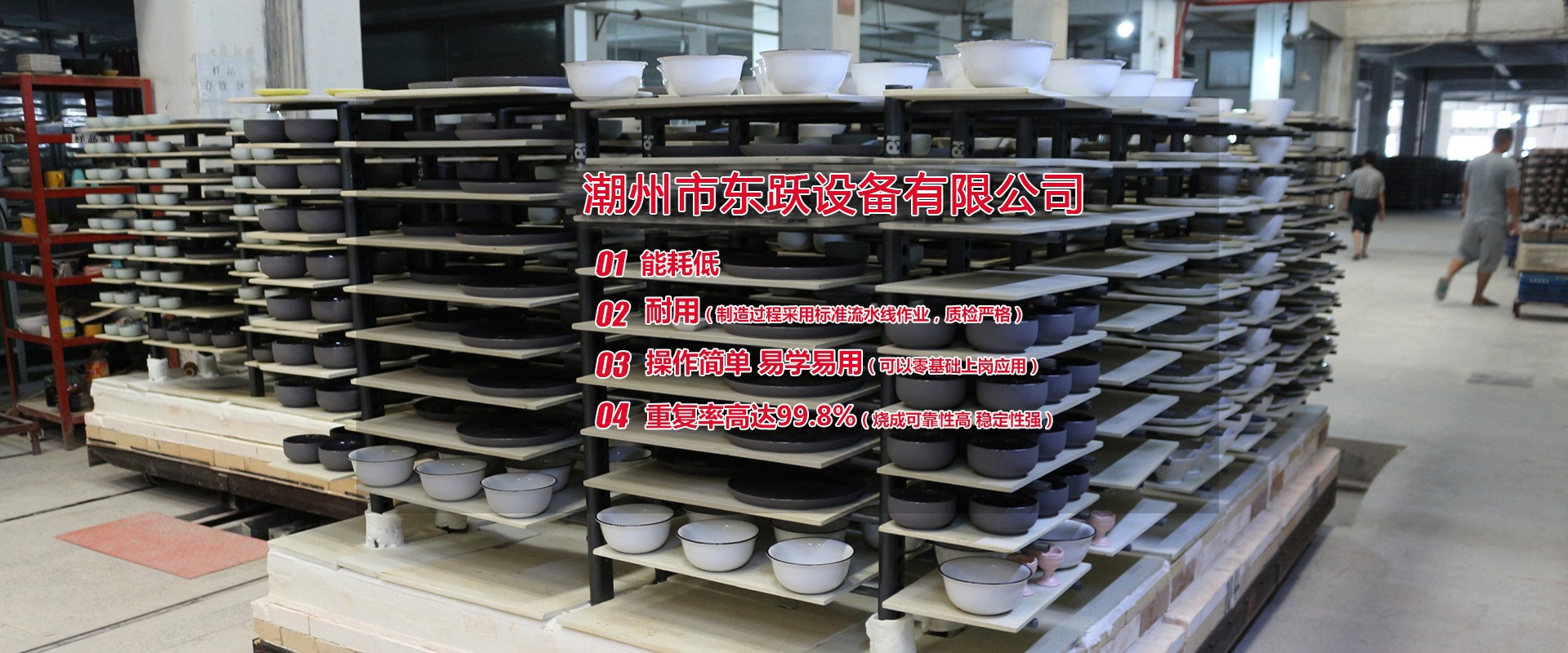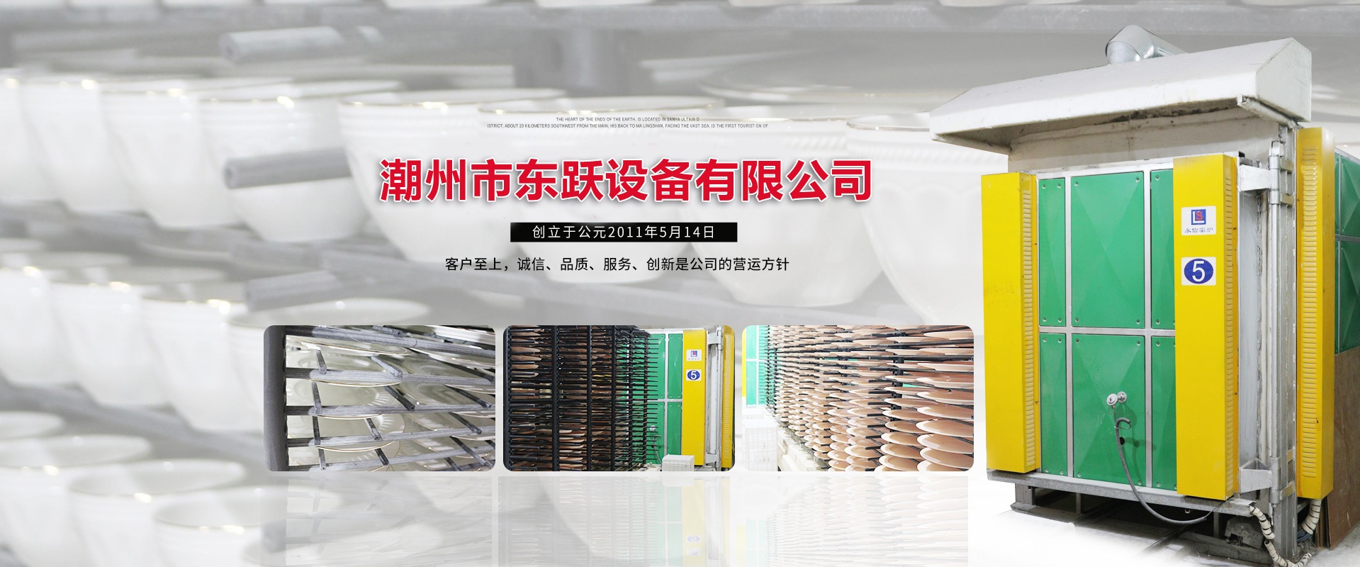 潮州市東躍設(shè)備有限公司,創(chuàng)立于公元2011年5月14日,經(jīng)過進(jìn)十年的努力,已發(fā)展成一家擁有集研發(fā)、設(shè)計、加工制造、安裝、調(diào)試與售后一體化的窯爐公司。設(shè)計理念:1.能耗低2.耐用(制造過程采用標(biāo)準(zhǔn)流水線作業(yè),質(zhì)檢嚴(yán)格)3.操作簡單 易學(xué)易用(可以零基礎(chǔ)上崗應(yīng)用)4.重復(fù)率高達(dá)99.8%(燒成可靠性高 穩(wěn)定性強)   現(xiàn)有設(shè)計人員10名,加工制造和安裝人員約100人,調(diào)試人員10人,售后服務(wù)人員10人,公司總?cè)藬?shù)約200人。公司本著以人為本的發(fā)展策略,不斷網(wǎng)絡(luò)人才,發(fā)展自動化窯爐技術(shù)。